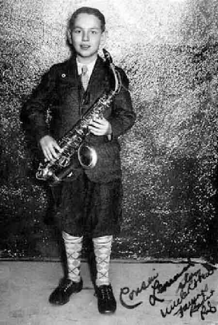 This American boy was named Lenny. We do not know his last name. Here he is shown with his alto sax wearing a knickers suit which was very common in the 1930s. Notice the patterened kneesocks.