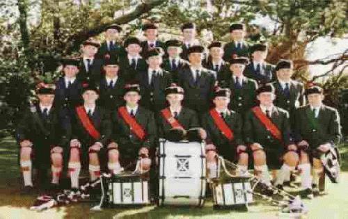 ![]() Figure 3.--This boy's pipeband at a New Zealand school also uses the Higlands Great Pipes. Drums introduced by the English are an important feature of the modern pipe band. |