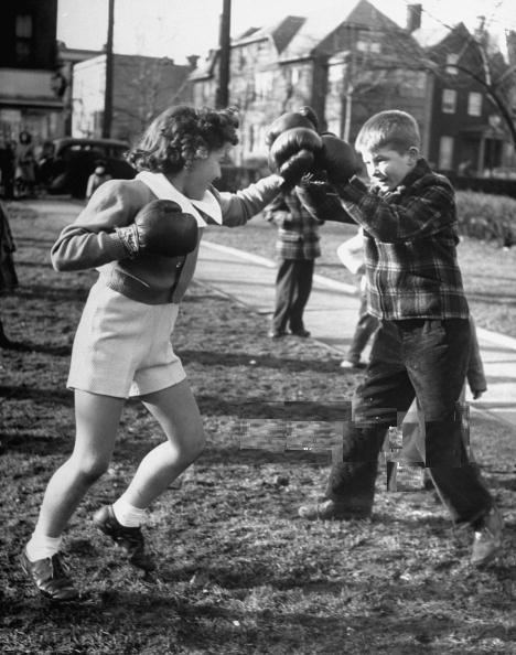 definitely a publicity shot. Staged is a little more difficult to answer. What we don't know is how he was dressed when not on stage or not touring. This may have been the outfits mom brought along for the tour. I just don't know. I do agree with the comment that he does seem to know how to box based on his posture. It is possible that they just let him have a little fun and snapped some publicity shots. Actually, we think a Life Magazine photographer took the picture. Our reader replied, "If that is the case, I remember reading something like 30 years ago that Life would tell the photographer to take 100s of images hoping for one that is good. So it is probable they just let the kids have fun and took the shot, but I have no way of knowing if that is true."