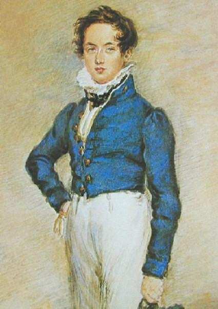 A trather stylish painting by English artist James Warren Childe (1778-1862), shows Bennett in 1832 at age 16 in the uniform of the Royal College of Music, London. We know very little about the artist at this time. He appears to have been primarily a portratist. We note other portraits by Childe with a similar pose to the one shown here for Bennett.