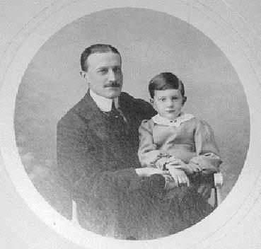 Figure 3.--Christian is seen here at 6-7 years with his father. He appears to be wering some kind of back buttoning tunic with kneepants and long stockings. |