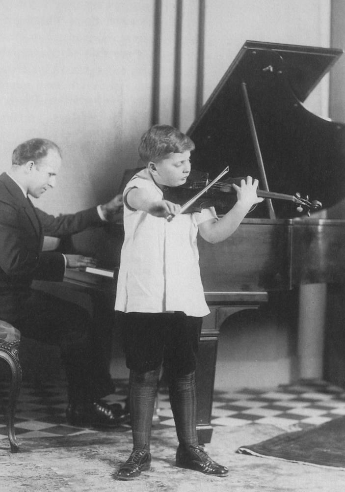 Yehudi received his first violin lessons at age 3 years in San Francisco from Siegmund Anker, who soon entrusted him to Louis Persinger, a student of Eugene Ysayes in Paris. The child made amazing progress and played the «Symphonie espagnole» by Lalo as a 7-year-old in San Francisco under Alfred Hartz. Enesco was a major influence on Menuhin and they were remained friends and nusical collaborators throughout their careers.
