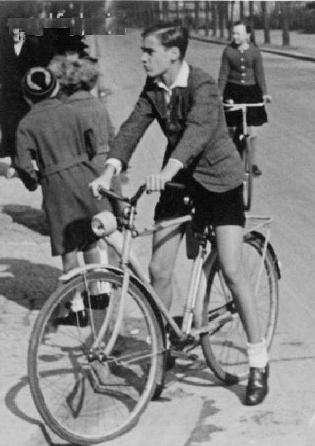 We note quite a few photographs of German boys with bikes. Germany did not play a major role in the development of the bicycle, but there was some work in Germany. Baron Karl Drais von Sauerbronn, who invented the "draisine" in 1817, 2 in-line wheels connected by a wooden frame. The rider sat astride and pushed it along with his feet, while steering the front wheel. Bikes became very popular in Germany and several mnufacturers produced them. We note a few boys had bikes in the late-19th century. A good example is an unidentified German boy in 1888 with a penny-farthing bicycle. Bikes in the 19th century were not all that safe. Manufacturers by the 20th century were producing bikes that boys could safely operate, although somewht expensive for many families. Many workers used bikes for transport to work. Cars were beyond the price that workers could afford. After World War I it became more common for boys to have bikes, at least middle-class boys. We note a German father and son about 1905-10. We note Hitler Youth boys taking biking expeditions in the 1930s. We note some girls with bikes, but most of the images we have founds are boys riding them. German boys commonly wore short pants wuth riding bikes. Lederhosen were a popular choice. After World War II with the German Economic Miracle, we see many more German boys with bicycles.