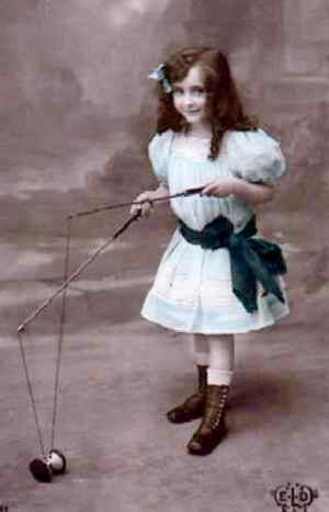 illustrate the clothing styles of all strata of society. Children of modest means were likely to play with their tops at home or on neighborhood sidewalks. Available images of the children at play provide a good idea of everyday children's clothes. Children from wealthy families also played with their tops at home. They often also took them with them for outings to the park. Wealthy children were more likely to play with their hoops in parks than pooer children. Wealthy parents had more leisure time as well as the money to employ nannies and governesses to take the children. Thus an outing to the park was an often daily ritual wear nannies and governesses, their charges dully outfitted would sally out from the confines of the nursery. The clothes the children wore for these park outings were much more formal than what we would think of as play clothes today. Thus boys might be dressed in Fauntleroy suits or kilt outfits for outings to play with their tops. It certainly was not what modern children would consider appropriate playwear, but the children of the era seemed to have made do quite nicely.