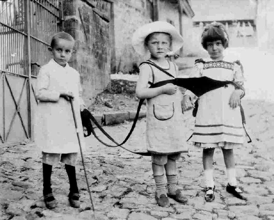 A popular game in the 19th century was horsey. Childrem would pretend to be horse and driver. This might be played with stick horses. Or children might fashion reigns and one or more children would pretend to be the horses and another child would be the driver. Tpy stores even sold play reins. This could be played with a wagon of some kind, but often children played it as a running game without a wagon. After the turn-of-the 20th century, horsey declined in popularity as trucks began to replace horses for transport. A German reader writes, "In 1944 when I lived in the countryside, after being evacuated from Stuttgart, we played 'horsey'", 5 to 10 year old children. I don't remember playing it in the city though."