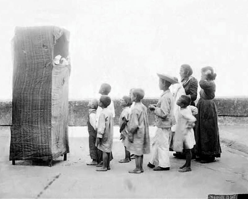 Punch and Judy shows are called 'lo spettacolo di burattini' -- meaning puppet perfornamnces. Punch and Judy shows became so poular throughout Europe for so long that people just thought that they were part of the national culture. The origins of Pumch and Judy can, however, be seen in the names of the originl characters. The were the mask performers in the Italian Commedia dell’arte. They created the masked character Punchinella/Punchinello who in England became known as Punch. The name is believed to have developed from the word Pulcino, meaning chicken. This is why the character has a beak-like mask and squeaky voice. Thry always had the same people in the stories--stock characters. The scripts varies, but not the charracters. The beloved Neapolitan rascal, Pulcinella, was especially influential. The character is credited to the Neapolitan actor Silvio Fiorillo combined with characters of traditional carnival. Some authoirs believe that the Campania region’s Greek pre-Roman history and ancient deities, especially Hermes, have had an imopact. In the best Neopolitan tradition, Pulcinella in the lore of Naples he a muti-faceted individual, a trickster to be sure, but also a protector othe common working man. He is such a sharp-yed character thnt he can even trick devil. [Scafoglio] The Comedia exposed the underbelly of Italin society. It was not meant for children, but was a kind of social commentary poking fun at rulers and speaking to the lives of the common peoople. It was a form of satire. As the name suggests, the performances were commedy, relying heavily on boisterous action, such as the throwing pies, mugging, and obvious farcical situations and jokes. The marrionette/puppet shows continued the hilariously violent tradition of the Commedia dell’arte actors. The first such puppet play performed in England (1662) was performed in Covent Garden by the Italian puppet showman Signor Pietro Gimonde from Bologna. Even in the 19th century there were Italians giving Punch nd Judy performances. Originally marionettes (stringed puppets) were used rather than glove puppets. Ridiculous voices were part of the oerformances from an early point. A reed placed at the back of the Punchman's/professor's created the sound effects. It was called a pivetta in italy, a swazzle in England. Over time these shows became increasingly aimed at children with more simple slap stick without the social commentary. An Italian reader tells us that these shows were popular in the sreets of Napleas and other Italian cities. In England they became more assiciated wiuth seaside resorts.