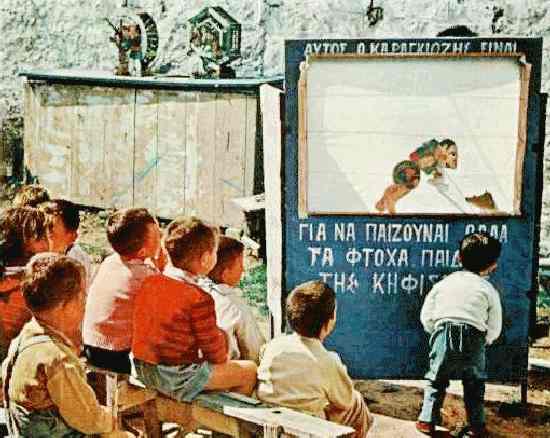 We note puppet shows in Greece during the 1960s. I'm not sure to what extent they are in the Punch and Judy tradition. One source indicated that there is a strong tradition of Punch and Judy shows in Greece where it is called Karagiosis.