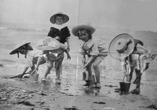 We also see children dressed informally for the beach or at least for seaside beach resort photgraphs. A factor here is that for younger children plsying in the sand is often more important than actually swimming which is a bit beyonf them and requires much more careful adult supervision. Even for playing in the sand we often see the children dressed rather formslly in the early 20th century. This changed after World war I when we see children wearing what might reasnably be called play clothes although it will ofte look rather formal to the modern eye.