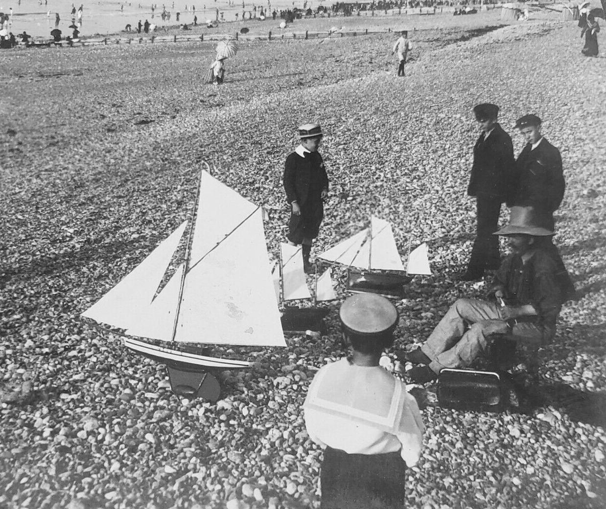 Dieppe is a fishing port on the Normandy coast of northern France. It is located between Calais and the Normandy D-Day beaches. It has a deep harbor which is what attracted the Allies in World War II and why the Germans protected it with substantial defenses. The area is known as the Located on the scenic Alabaster Coast. Dieppe has a centuries long seafaring history, dating back to the Vikings who arrived (8th century AD). The port's name, Dieppe meaning deep, is an allusion to the deep waters. Fishing was always important to the local economy. And even before Columbus, Dieppe fishermen began a distant-water cod fishery off the Americas (Newfoundland). Dieppe sailors explored the waters off Africa as European merchants opened up trade routes to the East. The famously pebbly beach is overlooked by white cliffs. Before World War II, Dieppe not only attracted French tourists, but was a favorite destination for British cross-Channel tourists. Dieppe was not only known for fishermen, but Dieppe sailors explored the globe. The port not only features the beach, quays and restaurants, and now a wonderful Saturday morning market. The Dieppe Beach is very pebbly, something the Allied invasion planners ignored and was a factor in their failure. At the top of the cliffs overlooking the beach is the historic Château de Dieppe. The castle’s museum includes maritime exhibits, ivory sculptures, and impressionist paintings. Close by is a Memorial to men who perished in the World War II invasion attempt (August 1942). The reconstructed medieval Saint-Jacques Church is a Gothic building. While Dieppe has a long history, its reputation as a vacation resort is much more recent, the result of the capitalist-driven Industrial Revolution, generating income for a widening sector of the French population. Dieppe is regarded as France’s first ever seaside resort beginning after the end of the Napoleonic Wars (early-19th century). Following the trend in England, English fashions, ordinary Parisians took up holidaying by the sea. And Dieppe was a popular choice. It was the first purpose-built Etablissement des Bains (sea-bathing establishment) in France (1822). The Dieppe resort attracted the British as well. At the time, despite the narrow Chanel, vacationing in France was not a major British activity. Particularly notable was the Bohemian artistic set which in addition to the beach resort, appreciated the more relaxed cultural atmosphere in France. The French Belle Epoque was a welcomed escaped from straight-laced Victorian Britain. Artists from both sides of the Channel worked and exchanged ideas at Dieppe. Ferry links made Dieppe an important first port of call for generations of British visitors. Among the visitors. were British boys like some of the children here attracted by a toy sail boat maker at the turn of the 20th century (figure 1). In recent years, Dieppe has become famous for its kites.
