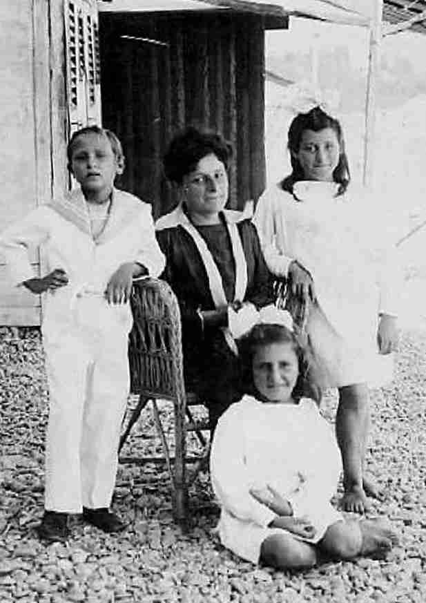 We have only limited information on Italian beachwear. A in other countrues, people commonly dressed up even at beach resorts. We do not see, however, nearly as many images of people wearing heavy suits to to beach. Of course the climate must have been a factor as Italy is much warmer than northern Europe. White sailor suits were very popular for boys in the early 20th century. White summer dresses were commonly worn by girls. Over time beachwear became increasingly more casual.in the early 20th century. Bathing costumes were similar to those wirn elsewhere in Europe. They were often done in wool. Horizontal stripes were very popular for beachwear. I believe it was seen as nautical. Italy was a poor country and many children could not afford actual bathing suits.