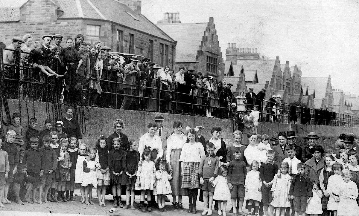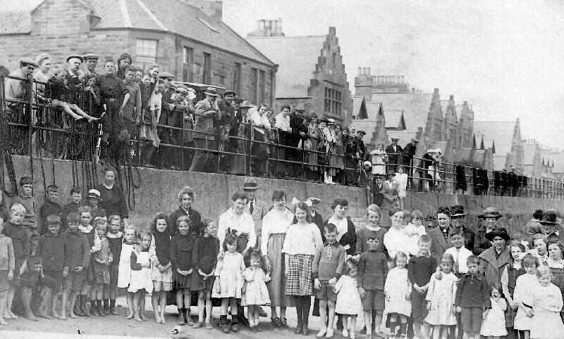 We do not have much information on Scottish beachwear. Here a factor to considr is that the children probably spent more tome playing in the sand and perhaps wading in the water than actually swimming. Thus swimsuits may have not been all that necessary for children. Notice that none of the children in the imsge here during 1923 are wearing swim suits (figure 1).