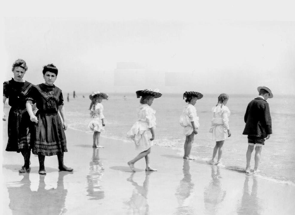 Train stations by 8:00 AM on wekdays would be croweded into trains running at short intervals from major northeastern cities. The railroad companies by the 1880s had girded the northeast with an expanding network of tracks. Trains ran from Philadelphia to Atlantic City and Cape May. A scooner also ran fromPhiladelphia to the beach resorts. Soon the beach resorts were teaming with men, women, and children. Hordes of day visitors stroll on rickity boardwalks. Other head for the water breaking on the beach. As the turn of the century approached, the beach was a novel event for the masses. For the first time Americans of modest means could vacation in the surf. Many had never seen the ocean or taken a vacation before. The price of admission was an inexpensive railroad ticket and the cost of a bathing suit.