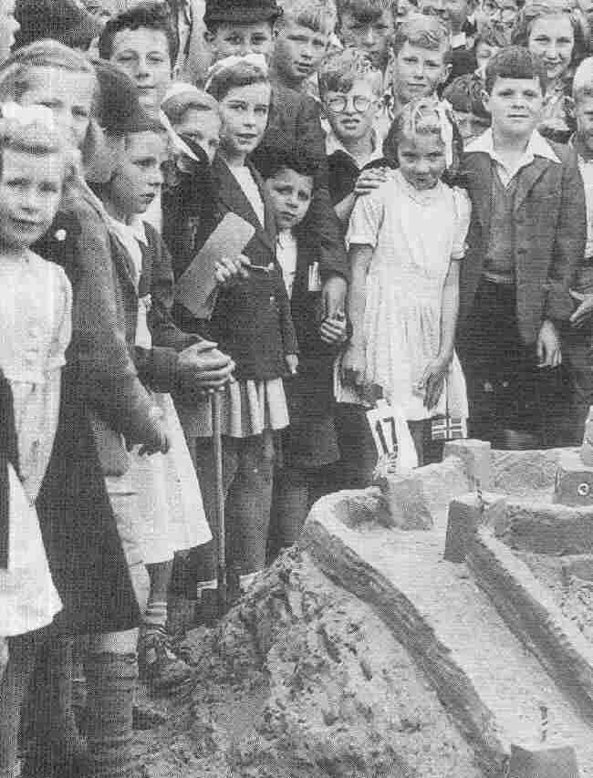 to dress up then when we were on holiday. More casual clothes would be worn as the week progressed. I last went to the seaside in a suit in 1960. I was at Brighton and I got oil on my trousers and had to have them cleaned." Caps worn without a school crest for leisure wear would have been part of school clothes if the school did not have a uniform. However sometime in the 1950's it went out of fashion and caps other than those part of a school uniform were not worn with leisure wear but there were still boys who did wear caps but this would be outings into town or other occasions when you wore your best suit. The second part of the image shows even more boys wearing suit jackets.