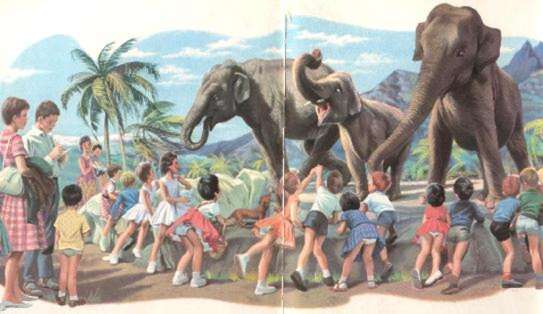 A French reader tell us that Marcel Marlier provides an accurate illustration of a zoo in southern France, perhaps Nice or Marseilles. He writes, "This was exactly the how French children dressed in 1960. Younger boys wore short pants and girls short dresses. Notice the boy placed to the left in the yellow shirt. He wears knit shorts. The knit shorts were made very short. This was common for boys 2-5 years old in early 1960s. These short knit shorts largely replaced the rompers that were popular through the 1950s."
