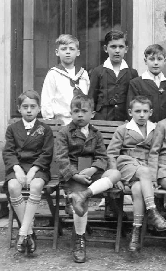 We have at thuis time relatively few glimpses of German First Communions during the 1920s. We do have one portrait of what looks to be a class in a German boys school. It does not look like a Catholic school as both the teacher and priest are in the portrait. This would have been common in the 1920s before the NAZIs as religion was a sibject in most schools. In many areas tyhe population was predoninately one religion. So in Catholic states like Bavaria, a priest might come into the state schools to teach religion. This ended when the NAZIs seized power. The boys in this 1920s class wear a wide range of outfits. Sailor suits seem popular as do suits with Norfolk stylings suchg as belts. Two boys are quite formally dressed while others have open collars.