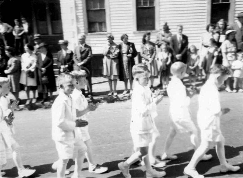 The girls always wore white junior wedding dressess. The boys outfits were more varied.We see some boys wearing white bloues without jackets in the 1920s. We are not sure about the 1910s. There may have been some white outfits, although always suits. Dark suits were, however, dominate in the 1910s. We begin seeing white suits more commonly in the 1920s and they were even more common in the 1930s. We see both dark sand white suits through the 1960s, but by that time First Communion outfits began to become less common and we see fewer suits and less formal First Communion attite. The thing about white suits is that unlike the dark suits there were more limited uses for the suits after the boy's First Communion. White suits were commonly vworn with short pants, but we see knickerts and long pants as well. They were worn with white socks or long stockings and white shioes. Some boys wore saddle shoes.