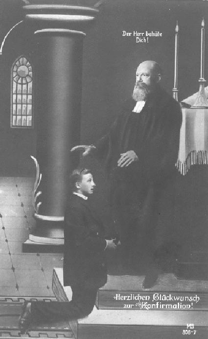 Confirmation was once very common for German boys. Lsarge numbers of boys participated Confirmation ceremonies. This was especially true of middle-class boys. Religion is today less an influence in Germany than is the past.