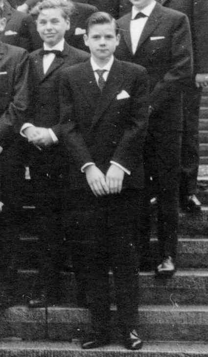 German boys in the 1960s generally dressed up in dark suits for their confirmations. Often a new suit was purchased for the occassion. A German reader Dieter who had his confirmation in 1968 writes "This is the photo of the whole confirmation group. You see. This is the picture of all the boys. I`m the boy in the first row at the right side (figure 1)."