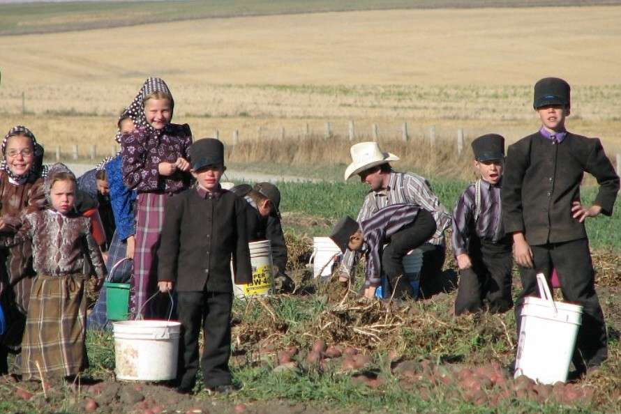 The Hutterites are a little more flexible than the amish when it comes to clothing. Bright colored clothing is allowed for children to some extent (no pastels or pink, however), but dark colors are encouraged for adults,