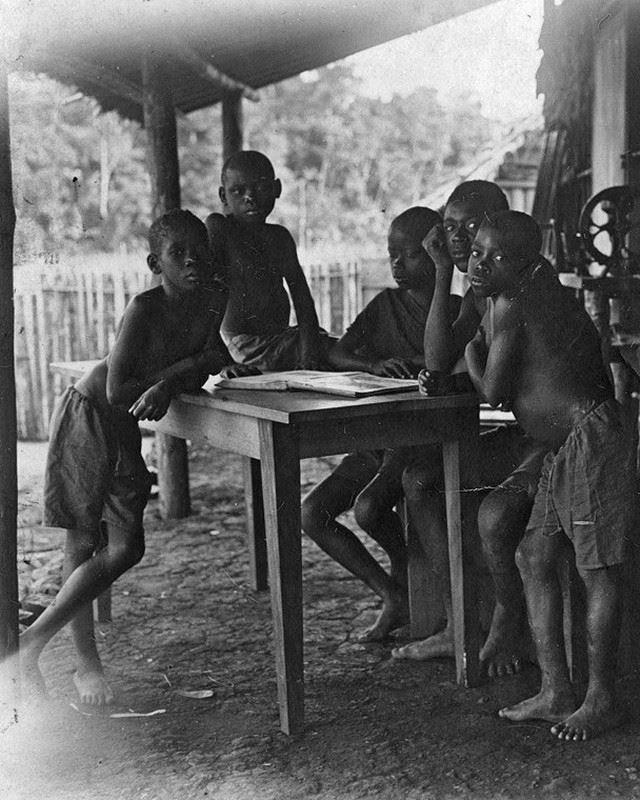 Important missionry socities were formed in Britain (1790s). Shortly after that the first missions were established (19th century). This has been called the fourth great age of Christian expansion. As part of their effort to spread the Gospels outside Europe and the Americas, missionaries set up missions throughout Africa. The slave trade anf thevoprimitice character of muchbif sub-Saharan Africa gave a dustunctuve character to the African missions. Their goal was not only to win converts, but to transform Africa. These missions were not only churches, but also included an humanitarian inpulse. They founded schools and medical clinics in an Africa that had neither. These missions played a major role in devloping both educational and health systems in Africa. Mmedical compounds like the work of Dr. Schweitzer in the Congo are famous. Others missions sponsored schools, like the Ovan mission in Gabon we see here (figure 1) received less publicity. Both efforts are fairly well known. Less well publicized is their vluable work with African languages. They produced grammars, dictionaries, textbooks and translations of religious texts. Christian missionaries essentially laid the foundations for the modern literature in African languages. [Pawlikov�-Vilhanov�]