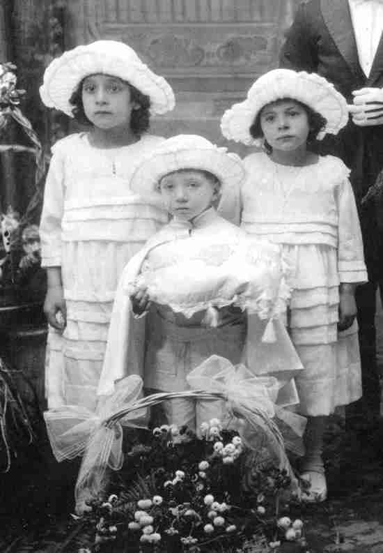 This formal wedding was held in 1921 or 1922. It is an Italian-American family. The ring Bearer is