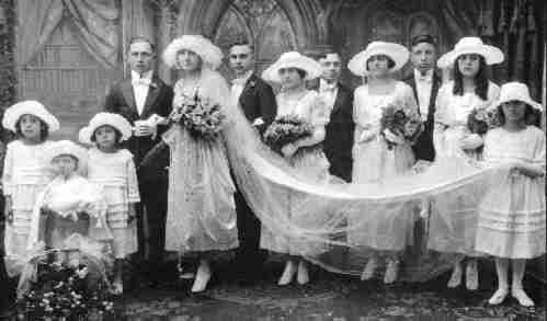 Figure 1.--This formal U.S. wedding was held in 1921 or 22. All the children and women wear white. |
