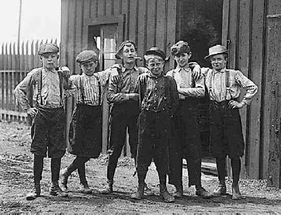 Figure 1.--These boys were photographd during thir lunch break while employed at the Obear-Nestor Glass Co. in East St. Louis, Missouri during 1910. |