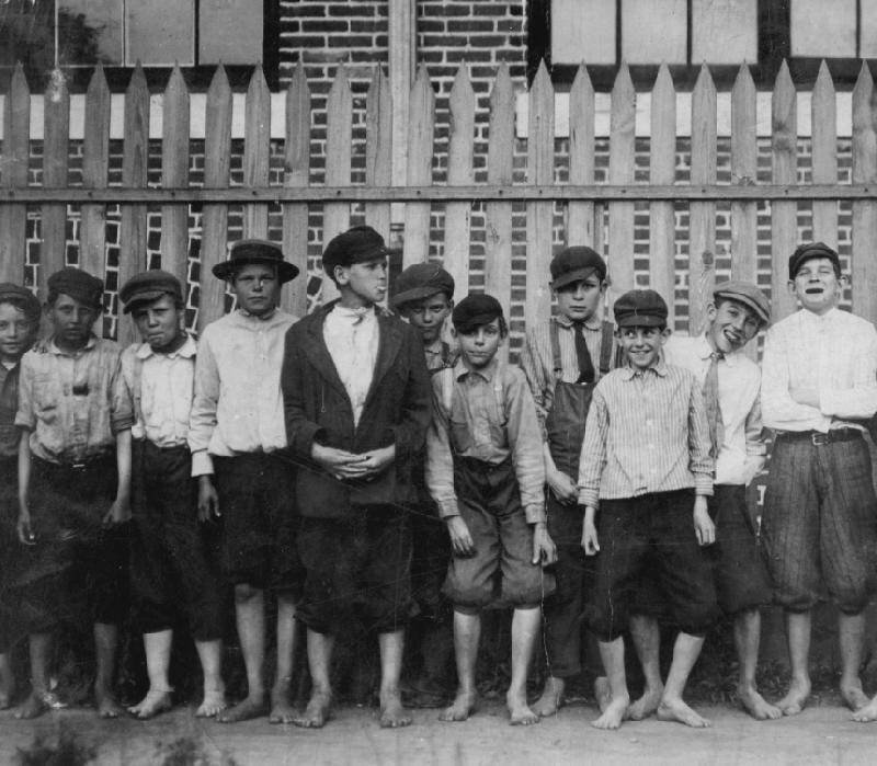 A very interesting development can be observed in Hine's photography. Many of the early photographs were taken in the northern industrial states. But gradually we see more and more photograhs coming from the South. This is because the northern industrial states began passing increasingly strict child labor laws. The largely agricultural South was much more reluctant to pass child labor laws. But isn't in interesting that these images are today used to condemn industrial capital when the ibdustrial states were the ones which ended child labor and the unidustrialized states were the ones which were reluctant to end child labor. Notice the boys here are from Georgia, a Deep South state (figure 1).