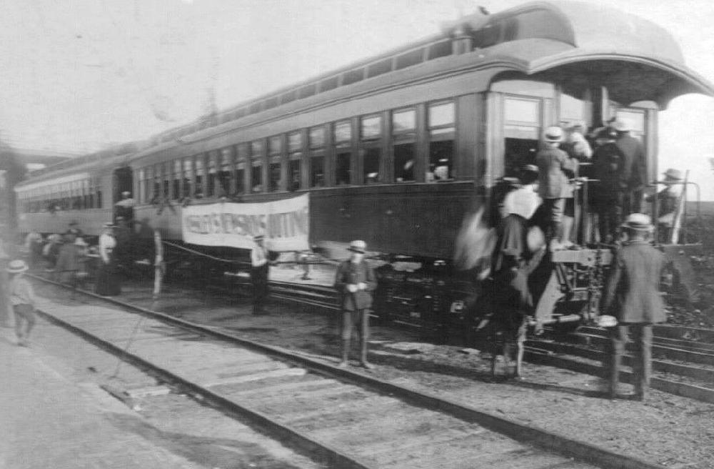 We notice special events being organized for newsboys sponsored by their papers as a reward for their work. We do not have a lot of information on this. These may include picnics and other special events. This varied from paper to paper. We notice a cabinet card photograph of a specal train with a banner, 'Newsboys Outing'. We are not sure where they are going, but suspect a picnic out into the countryside. It klooks like mothers abd sisters are coming along. The mount style suggests it was taken about 1905. It is a new style mount where the place and studio is not identified.