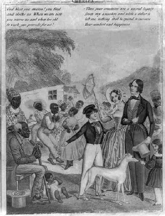 The available imagery of African slavery in America is extremely revealing. There are almost no paintings of Afruican slaves from the ante-beleum South. A few paintings exist of freed slaves who had their portraits painted, but very few paintings were done of slaves by their masters. This was because their oiwners had no interest in spending money on slaves, but also because the South as the 19th century progressed became increasingly defenside as abolitionist sentiment grew. Few plantation owners wanted images of slavery. There is one exception here. Weakthy Souttherners visited Europe before the War and when doing so often took personal slaves with them. Europeans unaccutomed to Blacks were intrigued and some portraits made in Euroipe included these slaves--often elaborately dressed. Portraits actually made in the outh, even by primitive artists to our knowledgfe, never included slaves in their portraits of wealthyb plantation owners. There exist today many images of happy, singing slaves picking cotton with a grand plantation in the background. These iages almost all come from the post-Civil War era as White Southerners began to perpetuate the Lost Cause theme, including the claim that Blacks were happy and well off on Southern plantations. There are like wise few photographs other than those taken in the 1860s as Federal troops moved south.