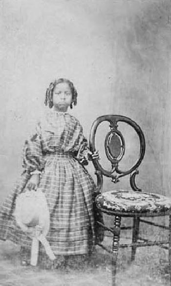 We note matching CDV portraits od Alice and Charlie King. We are not sure that they are siblings, but they probably were. King is the name of the woman who redeemed and adopted them. Presumably they had the same slave birth mother, but we do not jnow this for certain. We do know that they were both slave boy redeemed by a Mrs. King of Lima, New York. She also adopted the children. Their portraits were taken at the same time which we can tell by the identical setting and outfits. The children wear matching dresses. The children seemed to have been redeemed about 1861, the year the Civil war broke out. We do not know when the CDV was taken, probably in 1861 or 62. The later date was more likely as the CDV was just being introduced in the early 60s. They could not have been taken earlier as the CDV process was not introduced in the United States earlier. The Emancipation Proclamation was not issued until late in 1862 and did not become effective until 1863. The Emancipation Proclamation, however, did not abolish the institution of slavery. We do not know where the children were from or just how Mrs. King selected them to redeem. Presumably she had to buy their freedom. This CDV was reproduced commercially to raise funds. The CDV process based on a negative made it ppossible to reproduce the images in large quantities. We do not know how the funds from the sale of the CDVs were used.