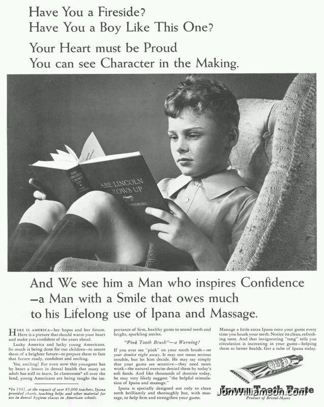 Ipana toothpaste was manufactured by Bristol-Myers. I and some of our older readers remember it. Ipana was a wintergreen flavored toothpaste with sodium fluoride as the active ingredient--interesting given its early appearance. It was one of the most well-known brand merican detifrice products. Bristol-Myers introduced it (1901). Bristol-Myers made an early commitment to radio advertising when the broadcasting industry began to take off after World War I. The program was the 'The Ipana Troubadors' (1923). Columbia issued popular records with Ipana Troubadors title (1925-31). Sam Lanin led the studio group. The Lanin brothers became important band leaders--a Jewish family with 10 children that immigrated from Russia with its pogroms during the 1900s. The magic of America took them from hated pogrom targets to popular entertainers. Here we see a World War II era ad, evoking a prtriotic rather than a commercial theme (figure 1). Ipana achieved its peak popularity during the 1950s. The company used a Disney-created mascot named Bucky Beaver during the 1950s. Of course beavers with their trae-mark teeth were a natural choice. Bristol made a big bet om magazine advertising focusing on women's magazines. Many adverising experts believe this was a mistake as men began to see it as a woman's/child product. Other reasons for the demise of Ipana was increasing competition from Procter & Gamble, Colgate, and others. Bristol's decision not to go big in color television. The company's decision to focus more on pharmaceuticals as Bristol moved to becone a drug powerhhouse. Poilitical attacks about floride may have been another factor.