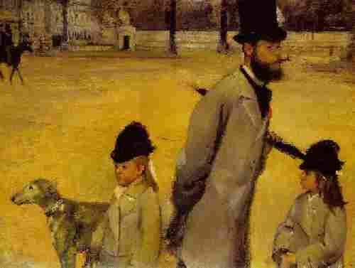 background instilled into his early art a haughty yet sensitive quality of detachment. His father, Auguste, headed the Naples branch of the family bank. Edgar's grandfather had fled to Naples from Paris during