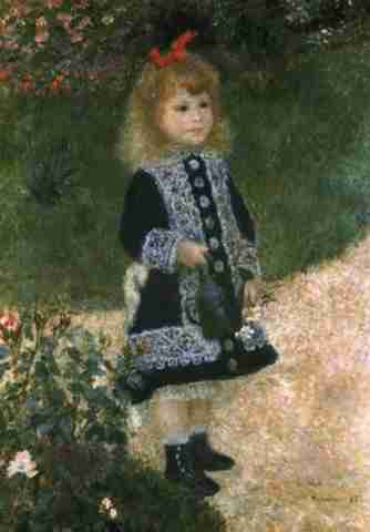 In many of Renoir's paintings we know the actual name of the subjects as they were done as commissions or for family friends. A good example is "The children of Martial Caillibotte (1895), the niece and nephew of a close friend. I do not know, however, who the subject of the famous "Girl with a atering can". According to a knowledgable source, this painting was made in Monet's garden and the subject is Monet's young son. The garden is of course the same garden that Monet so enjoyed painting. The dress is similar to the Fauntleroy dress and