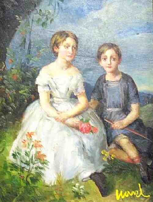 We notice some paintings that depict historic costuming, but look to us like modern copies. The quality and accuracies of these copies varies widely. In addition the artust and painting being copied are not always available, reducing the utility of these paintings. There are also modern paintings of historic scences that are original art work and not copies. These paintings are not very useful. The real value of artwork in assessing historic costume is that the depictions are of contemprary peopke and clothes. Modern paintings for historical accuracy woukld require a detailed knowledge of the clothing of the era, which few painters have. We are not sure what to make of this painting. The clothing depicted, a boy wearing a tunic outfit perhaps in the 1830s seems very accurate. It looks to be a poor copy of an actual painting, but we have been unable to identify the original painting.
