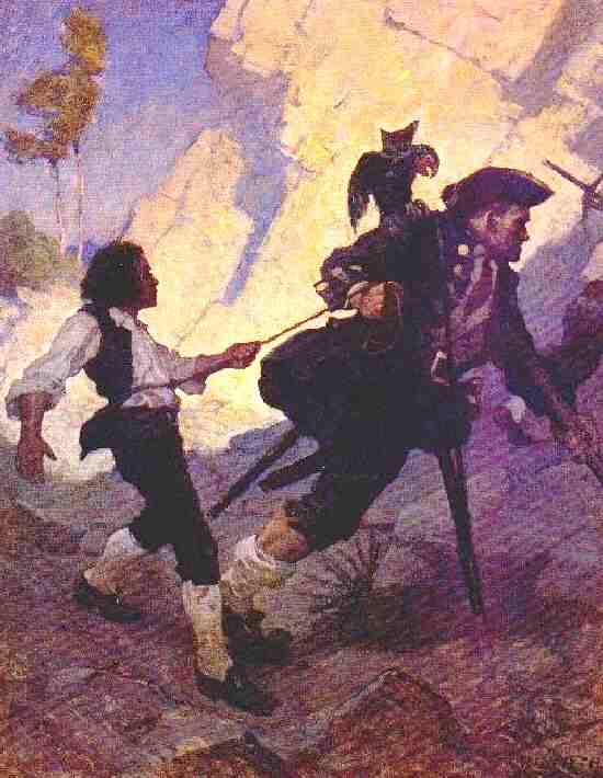 Figure 1.--This N.C. Wyeth illustraion shows Jim Hawkins with Long John Silver and his parrot on Treasure Island. |