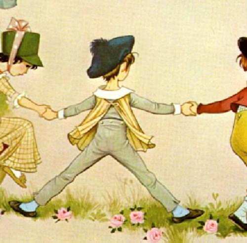 Figure 1.--The Grahame Johnston sisters drew both boys and girls in smocks. Here a boy wearing a skeleton suit wears a back-buttoning smock. HBC is not sure, however, that boys in skeleton suits wore smocks. Notice the tam that the boy is wearing. |