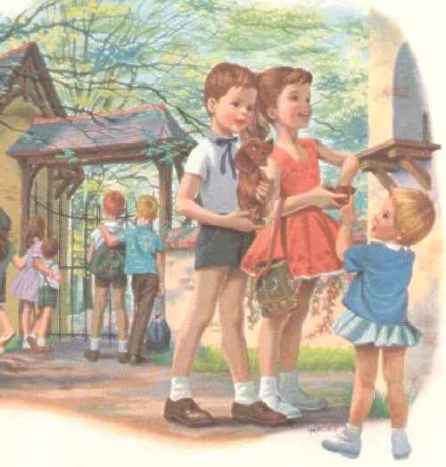 ![]() Figure 2.--This Marlier illuistration was done in 1963 and shows an outing to the zoo, this time during the summer. |