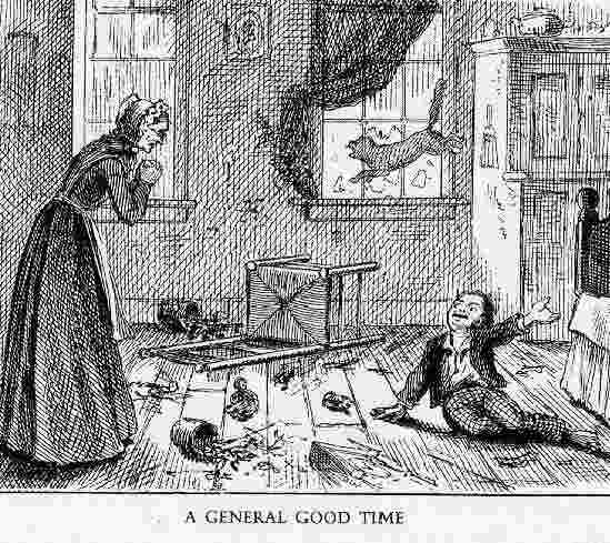 Figure 1.--This True Williams illustration from the original edition of Tom Sawyer shows the relationship between Tom and long-suffering Aunt Polly. |