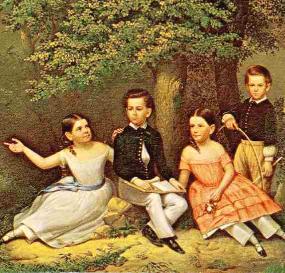 ![]() Figure 1.--We note an excellent portrat of the Kellogg children. We do not know when it was painted, but would guesss the 1850s. The family was from Old Bennington, Vermont. There were two sisters and two brothers. I do not have the date the portrait was set, but would guess the 1850s. I am not sure if they are related to the cereal Kelloggs. |