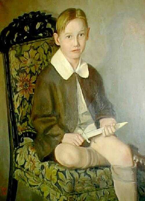 We have no information about the artist at this time. We do have one signed portrait by O. Dalberg done in 1935. He appears to be a Danish artist, but we are not sure of this. The portrait was noted in a Copenhagen sale. We believe the portrait is of a Danish boy. We do not know his name. He looks about 8 or 9 years old. He wears a suit looking rather like an Eton suit with small jacket and a wide white collar. It looks to a rather dated style in that the jacket does not look like it buttons. The collar looks some what like a Eton collar, but is not siff enough. It is no rounded enough to be a Peter Pan collar. It is a short pants suit with tan knee socks. H has a center part hair style which as becoming a little dated in 1935.