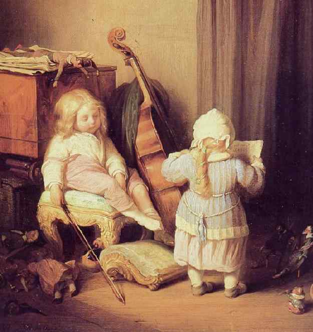 The only Austrian artist in our database is Josef Franz Danhauser (1805-45), but we know realtively about him. He painted in the clasical realist style. Josef was born into a family with artistic tastes. Josef David Danhauser (1753–96), Josef's father was a sculptor. Josef's brother was a successful furniture manufacturer. He created a variety of elaborately decorated furnishings for royal and noble patrons. He also produced more modestly priced pieces for middle class homes. Josef Franz was the younger son and he persued painting. Josef Josef David took an interest in both sons, attemting to instill a love in the arts. He participating in their education, teaching drawing among many subjects. His younger son Josef was the more apt pupil. Josef persued his education, focusing historical painting at the Vienna Akademie (1820–26). The Archbishop of Eger in Hungary, László Pyrker, took an interest in the talented boy and supported his studies. The Archbishop helped finance a trip to Venice to provide the opportunity for Josef to study some of the great Renaissance masters. He was able to spend 5 months in Italy. His family wanted him to devote his energies to the family furniture factory as his paingting could not support the family. The Archbishop commissioned him to come to Eger to execute aeveral portrairs and to restore deteriorting paintings in the Archbishop’s Palace. Jodsef's father died in 1829. Josef Franz had to return to Vienna and help run the family business. Josef in 1833 was awarded a prestigious commission to paint the altarpiece for the new cathedral at Erlau. The result was the "Martyrdom of St John" (1834–35). He subsequently painted a series of religious paintings which established his reputation. The "Expulsion of Hagar" (1836) received a prize from the Akademie. We do not have extensive details on his body of work, but sedides the portraits and religious paintings we notice sone genre work, like the domestic scene here (figure 1). Danhauser was appointed Korrektor of history painting at the Akademie (1838). The appointment was based on his reputation. He was in fact quite outspoken about in criticizing the Akademie's limited curriculum and uninspiring instruction methods. He died quite young in 1845.