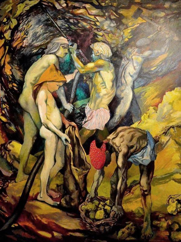 Renato Guttuso was a modern Italian artist. He was born in Bagheria, close to Palermo, Sicily (1911). He nobed to Rome (1937) and largely worked there. He engaged in a range of artistic acticities. He did sets and costumes for Histoire du Soldat (1940) and llustrations for books. His illustratiins for Elizabeth David’s Italian Food (1954) introduced him outside of Italy. Guttuso was a fervent anti-Fascist. He joined the Communist party (1940) which was banned by Italy's Fascist Government. He become an active participant in the partisan struggle which rise up after the Allied invasion (1943). After World War II, Guttuso created the Italian Communist Party's official logo. We note a painting bond to his homeland (1953). It shows the workers in the Sicilian sulfur mines. In the same year a press report on the Sicilian mines showed that there were still boys working there. One art historian describes Gurrusp as developing 'out of Expressionism and the harsh light of his native land to paint landscapes and social commentary.' [Hamilton] We have always wondered hoe an artist can be a Communist given that artists in Communist countries are not free to create freely. And they have to conform to the dictates of the Party in subject matter, depivtion, and style. Is that really acceptable to artists like Guttuso? It is notable that Communist countries have produced relatively little great art. An important part of art is social commentary like the suloher mine, yet Communist countries do not permit seriius citicism of their society.