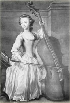 Figure 1.--This portrait shows Benjamin Hallet playing a chello or similar instrumnt dressed in a tightly laced dress. This engraving by James McAedell from the original painting by Thomas Jenkins was done about 1750. |