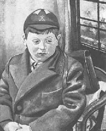 Figure 1.--This painting of a British schoolboy nmmed Harry Banks was exhibited at the Royal Academy in 1936. Notice the cap and backpack-style book bag. |