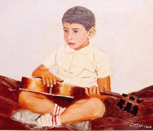 We have noted a 1964 portrait of "A boy with a gutar". The boy seeems to show Texas' Hispanic heritage. We are not sure about his boy's relationship to the gutar. He does nor seem to be painting it. He looks about the age that he would begin to learn to play a guitar.