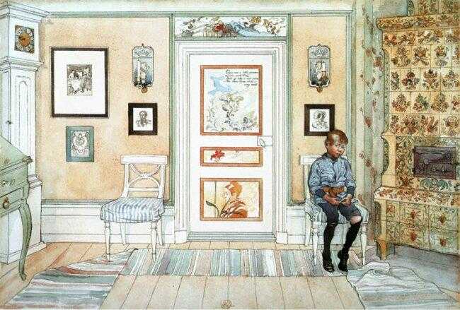 Larson depicted some younger boys not yet breeched. Most of the other boys he depifts wearing knee pants. Knee pants were very popular for boys, espcially in the late-19th century and early 20th century. Most boys wore them.