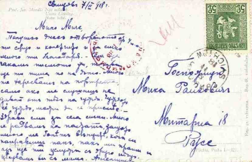 We know nothing about Josef Mandlt other than his name and dates. We think he may be Austrian, but am not yet sure about this. We have been unable to find information about him. The boy here appears to be wearing some kind of open neck blouse. We are unsure as to just what the conventions are associated with this garment. One iteresting aspect of this portrait is that it was made into a post card, one of a seies of art cards. It was mailed during World War I. The message was even passed by the Bulgarian censor. Click on the image to see the message.