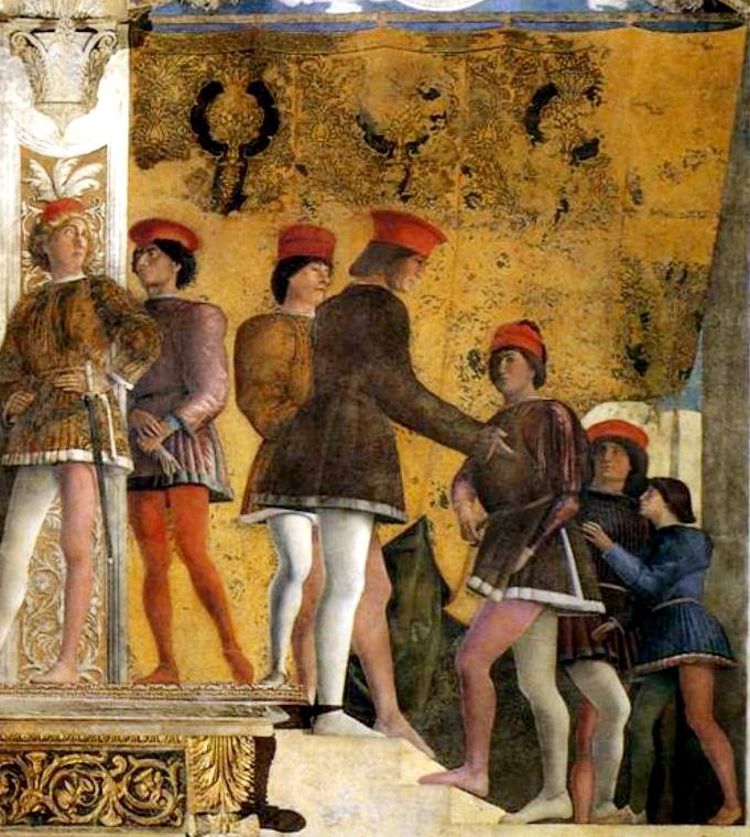 Andrea Mantegna was a noted Italian painter and engraver of the High Renaisance. Mantegna was noted for his depictions of heroic figures. He is especially known for his foreshortening technique to give dramatic perspective in wall paintings that were viewed from below. He was adopted by an art teacher, butvbroke with him at age 17 to open his own work shop. His career is associated with the Gonzaga family in Mantua where he worked as court painter. Some of his work provides fascinating glimses of Renaissance court life.