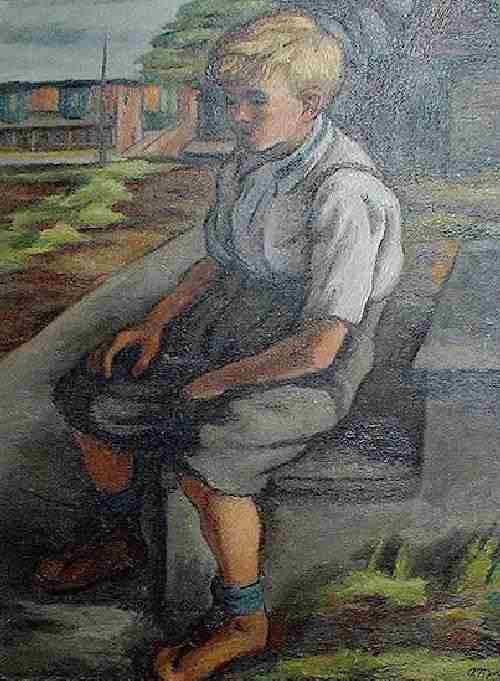 Figure 1.--We have no information on this Canadian artist. Apparently he is not very well known. We do have one of his oil paintings depicting a boy wearing knickers, probably about 1930. |